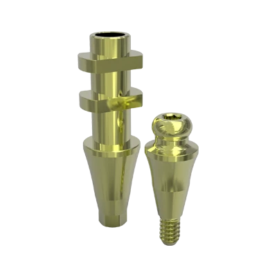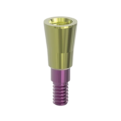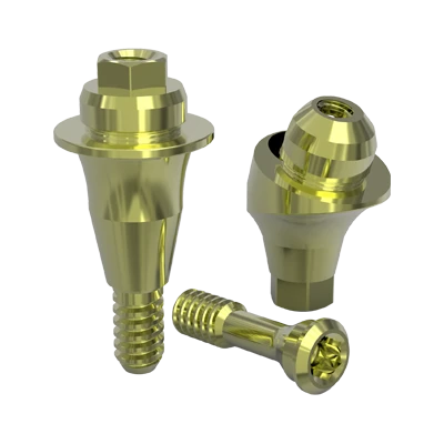 Pilares de Titânio, anodizados na cor amarela para reabilitações de Zircónio. Funcionam como interface, permitindo a ligação precisa das próteses aos implantes.